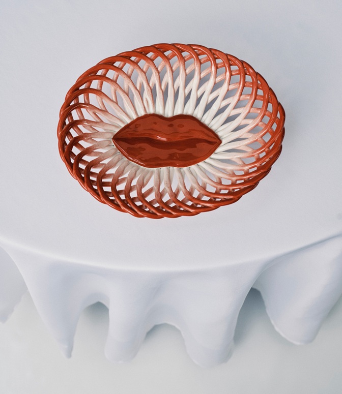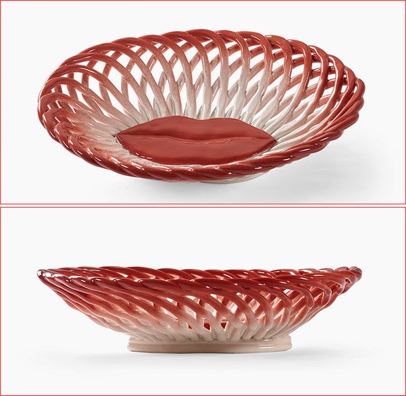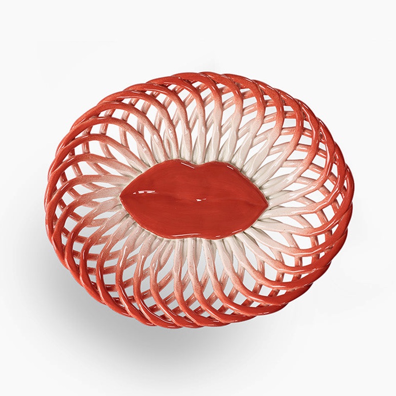 This ceramic basket by Wouters & Hendrix unites art and humor with elegance and functionality. Hand-woven and closed at the base with sculpted lips, it forms a playful nod to Salvador Dalí. Looks beautiful in your interior! Also lovely on your set table as a bread basket! The design duo Wouters & Hendrix, founded in 1984, stands for craftsmanship and surprise. Born in an avant-garde moment, they bend the rules of making and wearing traditional jewelry. Subtle rebels with a love for surrealism, drawn to unexpected combinations of materials and techniques. Les Objets Mouleversants brings that same avant-garde artistry to home jewelry. Handmade interior objects. The playfulness and creative essence of Wouters & Hendrix blurs the boundaries between functionality and art. Dimensions: 27 x 22 cm and 7 cm high. Delivery time: ships in 1 to 3 working days.